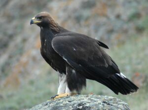 For many nations, the majestic golden eagle symbolizes strength and greatness, and it is consequently featured on many government emblems and flags. There are six subspecies, differing slightly in size and plumage, including an Asian Aquila chrysaetos daphanea subspecies (also known as the Himalayan golden eagle or berkut). Widespread in Kazakhstan,  this variant is the largest of the golden eagles on average.